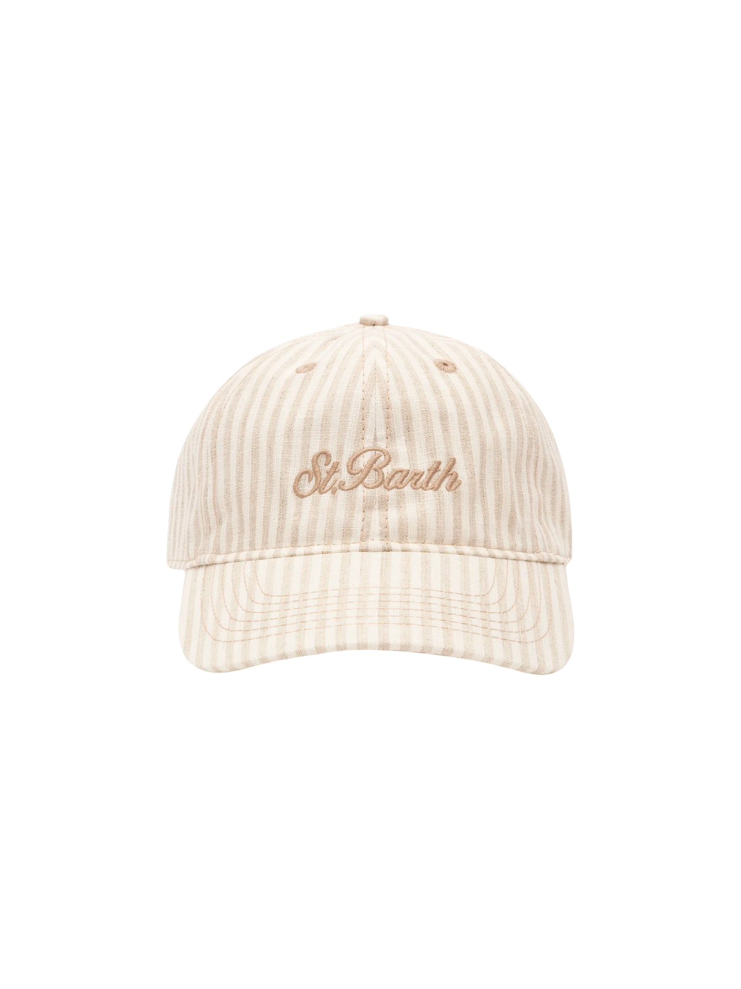 Baseballmütze aus beigefarbenem Baumwollleinen mit Streifen