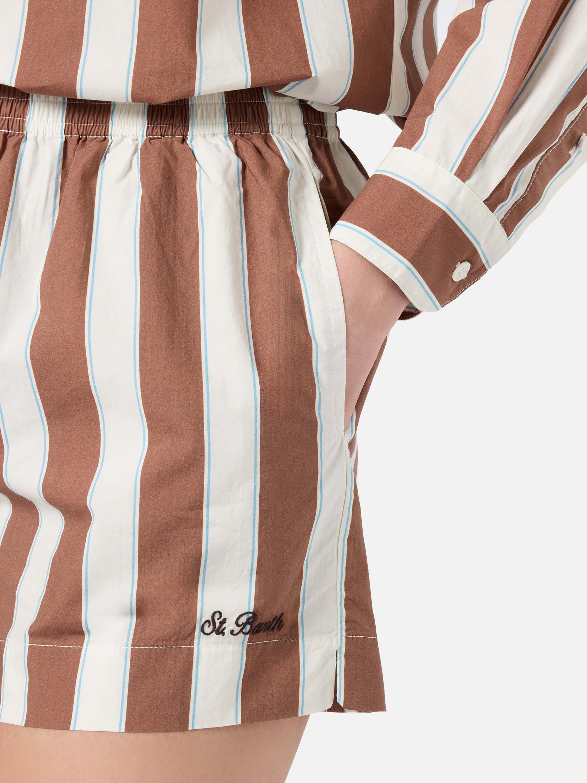 Brown striped Meave cotton shorts