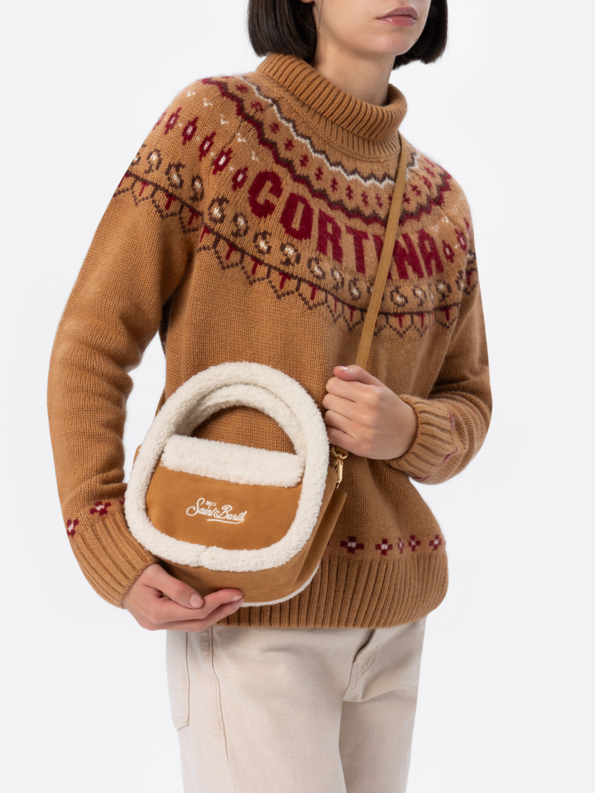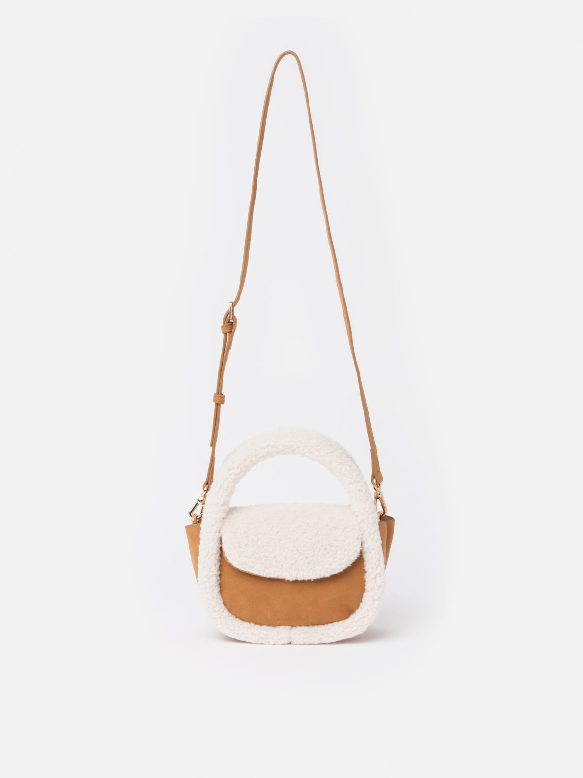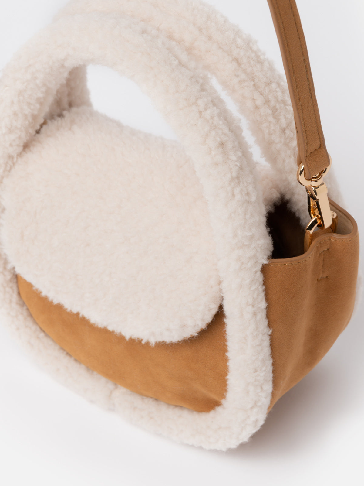 Umhängetasche Gilda in Kamel-Hammel-Optik mit Shearling-Details