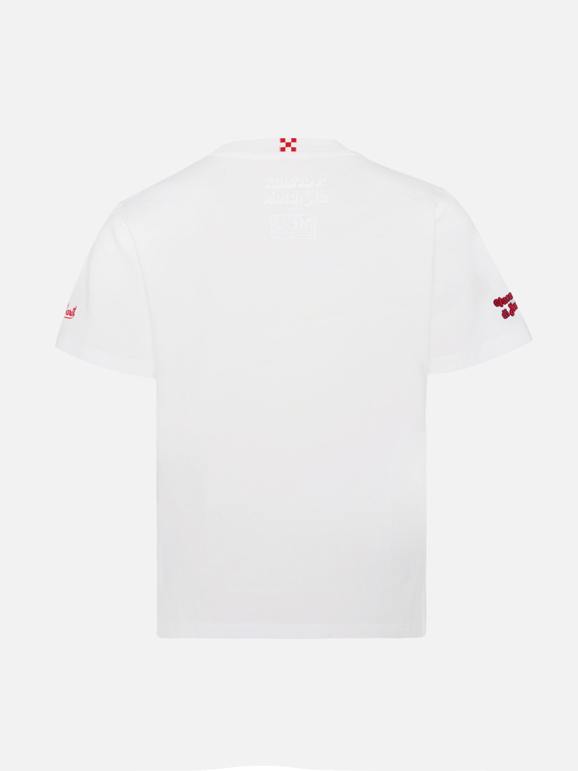 Cameron Warm winter cotton T-shirt in white with E nun m’angoscià embroidery | VACANZE DI NATALE SPECIAL EDITION