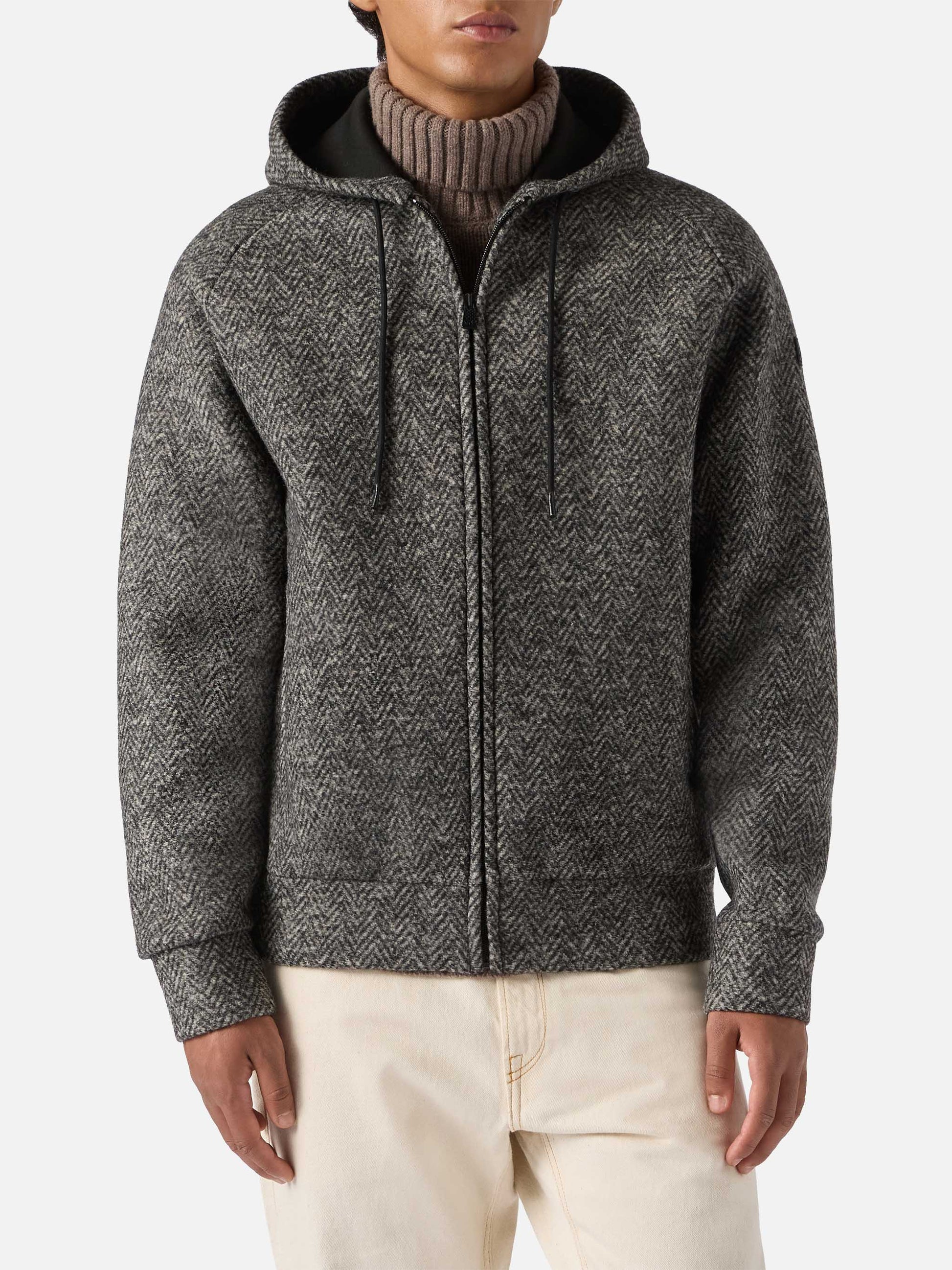 Carrell Wolljacke im Fischgrätmuster mit Reißverschluss und Kapuze
