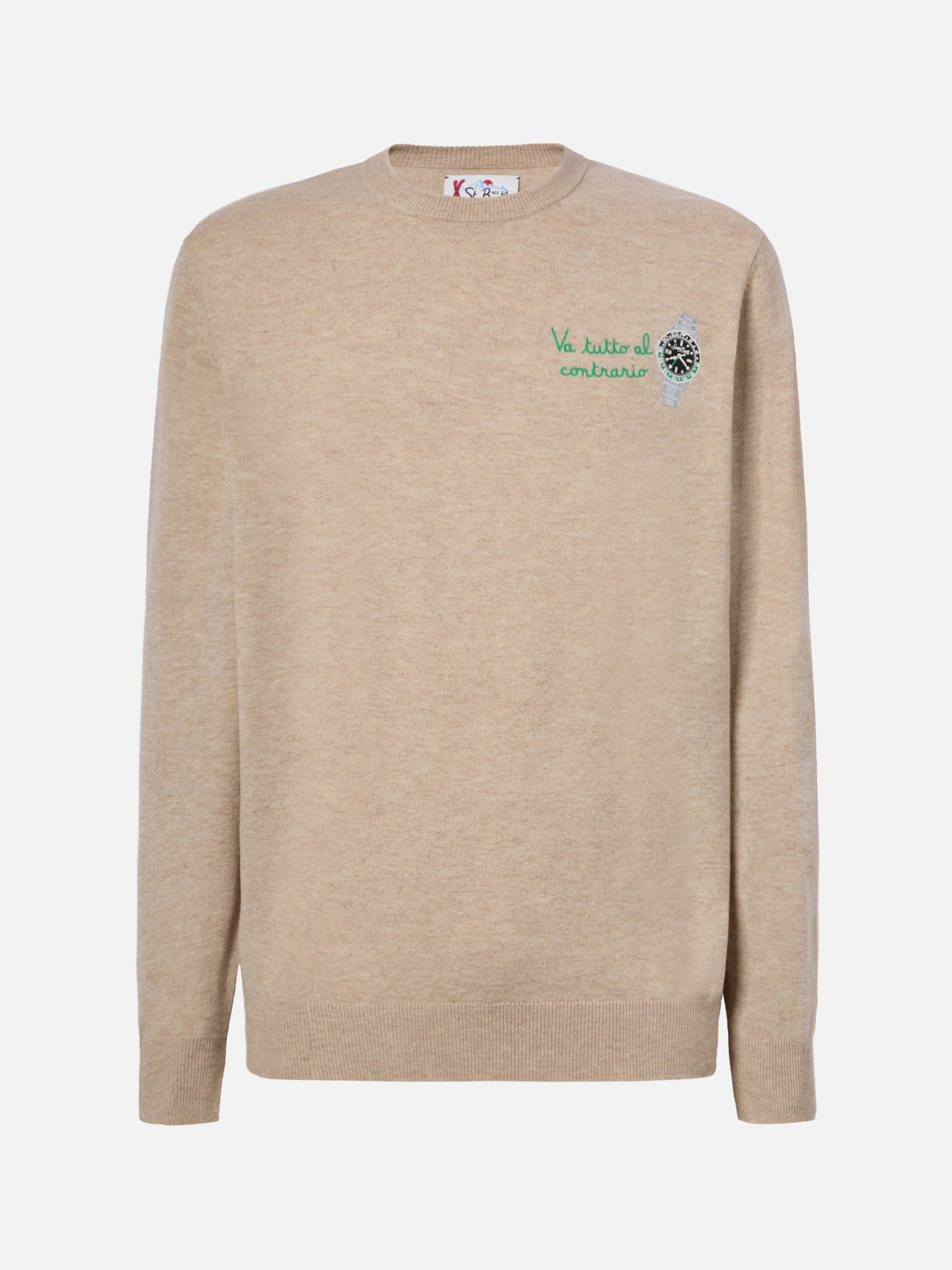 Crewneck sweater Heron Light with Va tutto al contrario embroidery