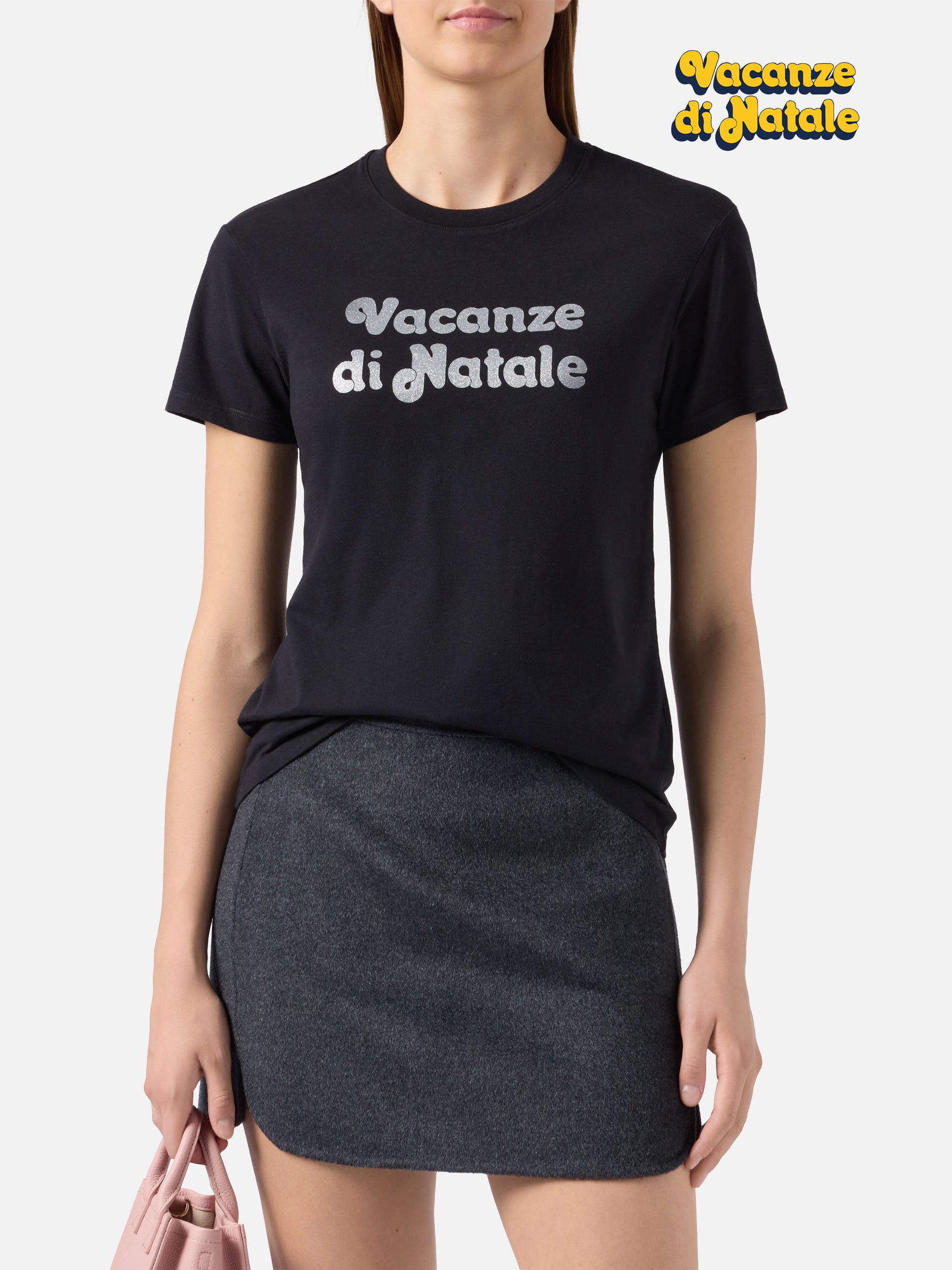 Emilie cotton T-shirt in black with Vacanze di Natale glitter print | VACANZE DI NATALE SPECIAL EDITION