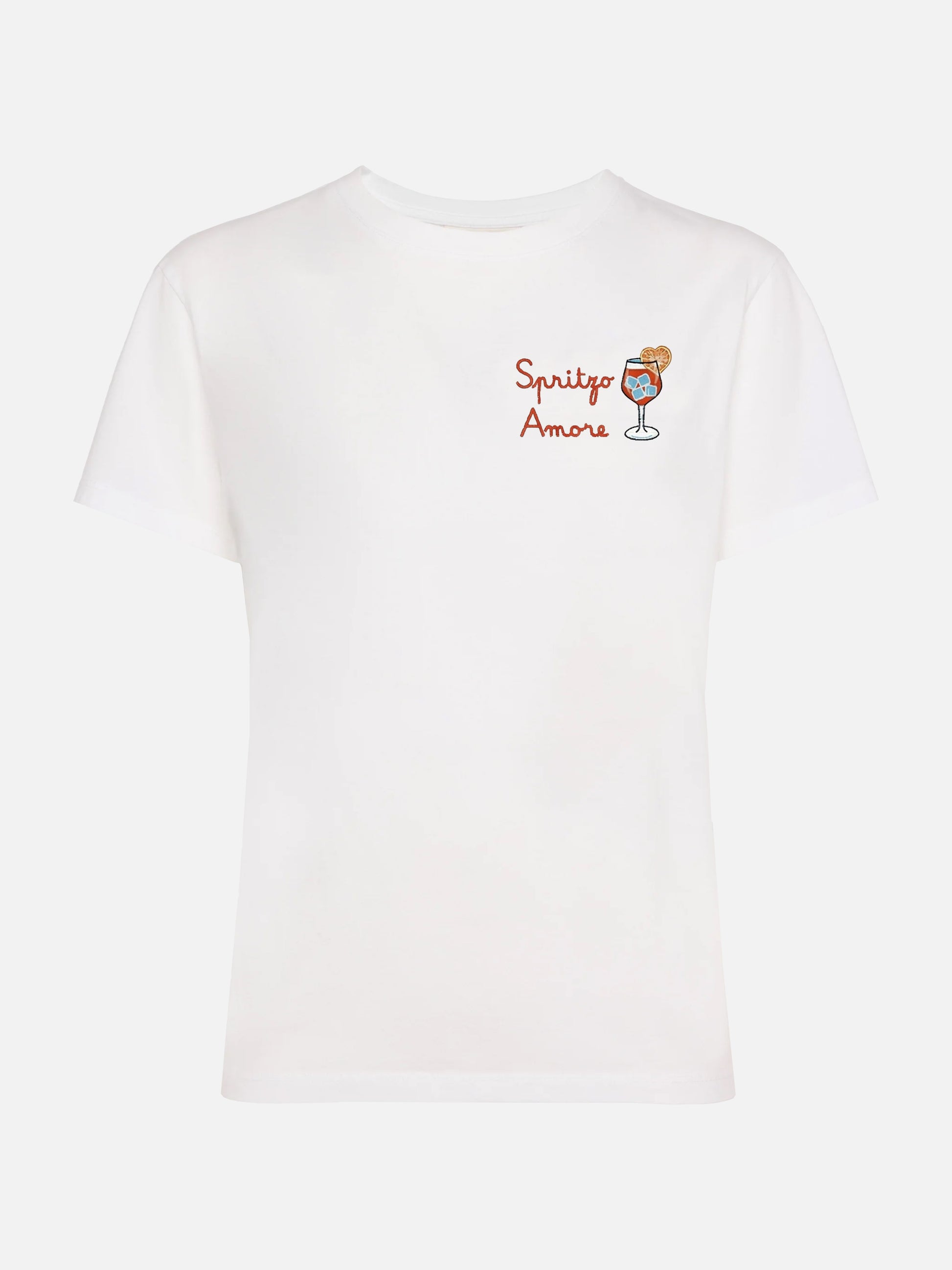 Emilie cotton T-shirt featuring Spritzo Amore embroidery on the chest, designed for an ironic and carefree mood inspired by convivial moments.