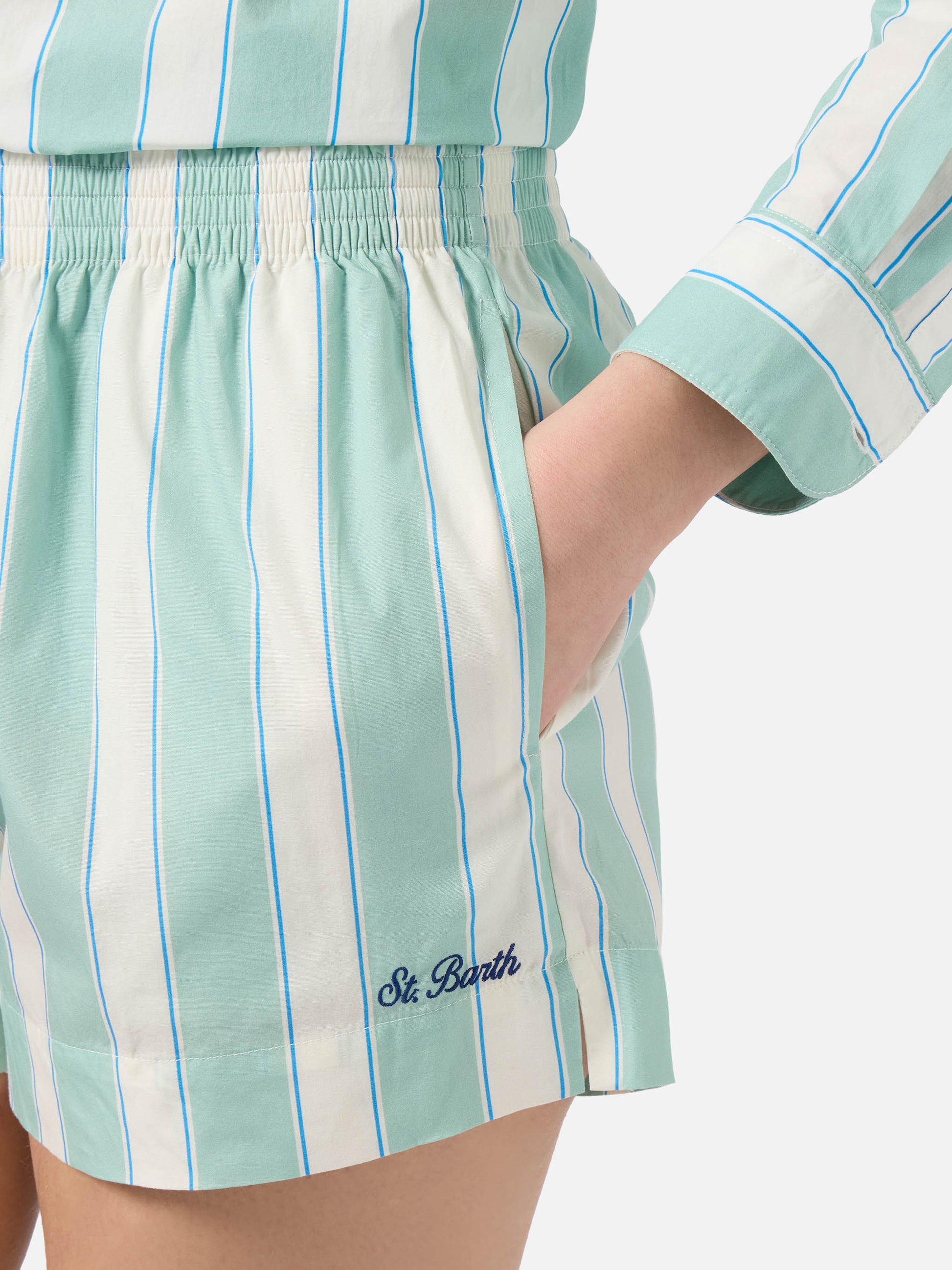 Green striped Meave cotton shorts
