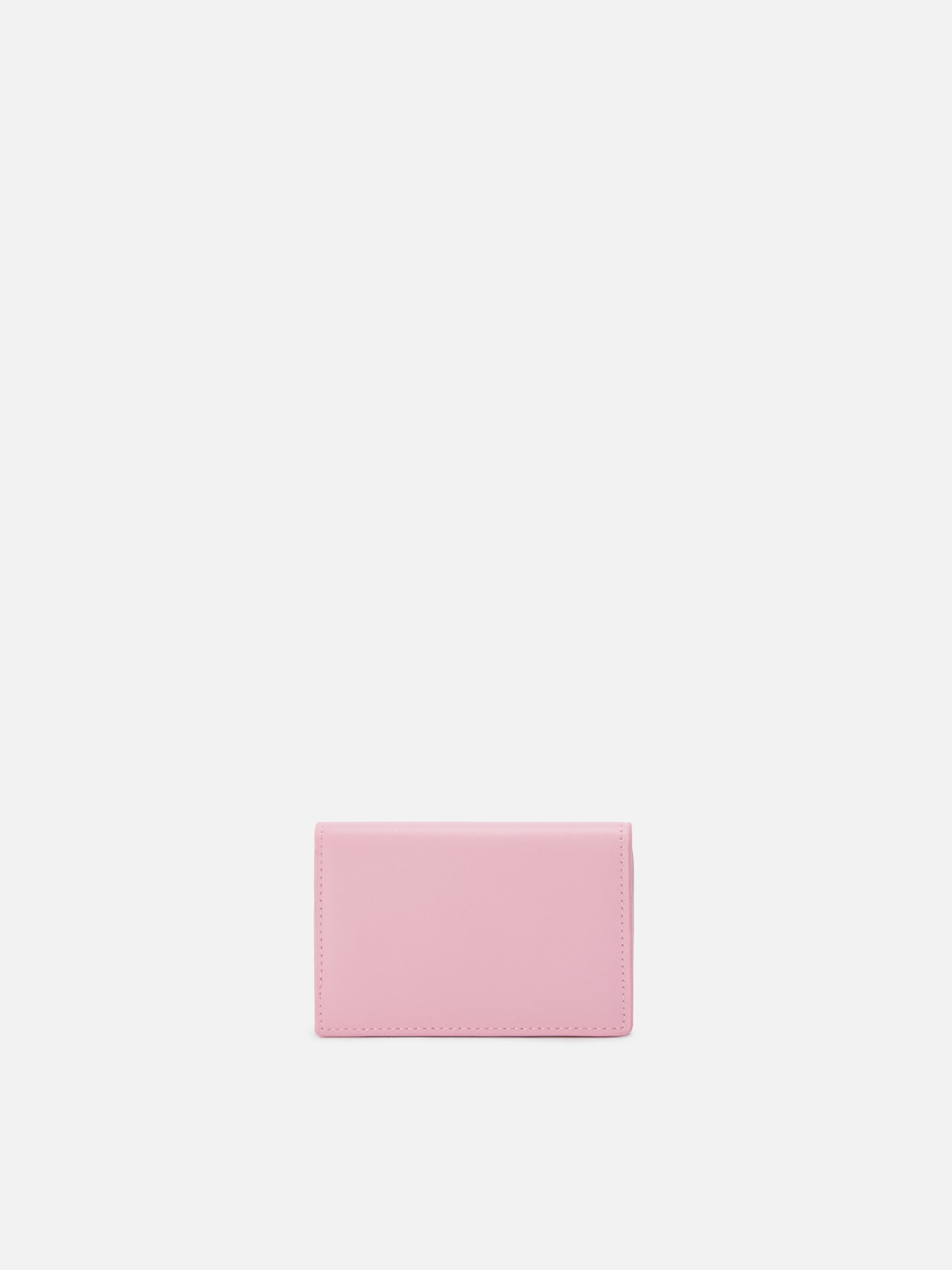 Light pink smooth leather card holder with metal logo