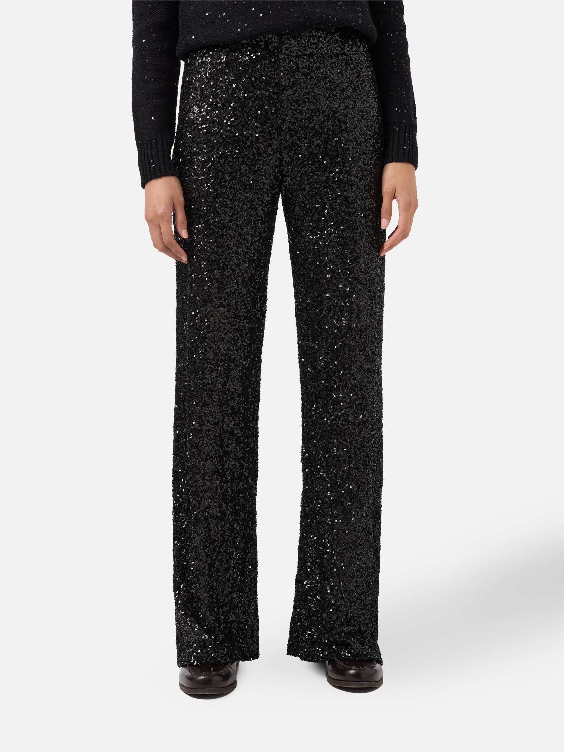 Lucette straight-leg trousers in sequin fabric black