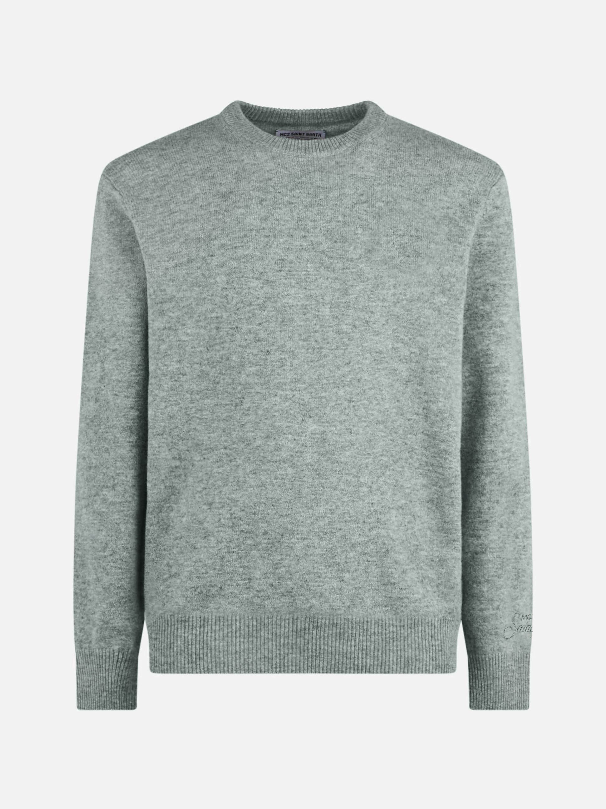Regent Rundhalspullover in meliertem Grau, 100 % Kaschmir