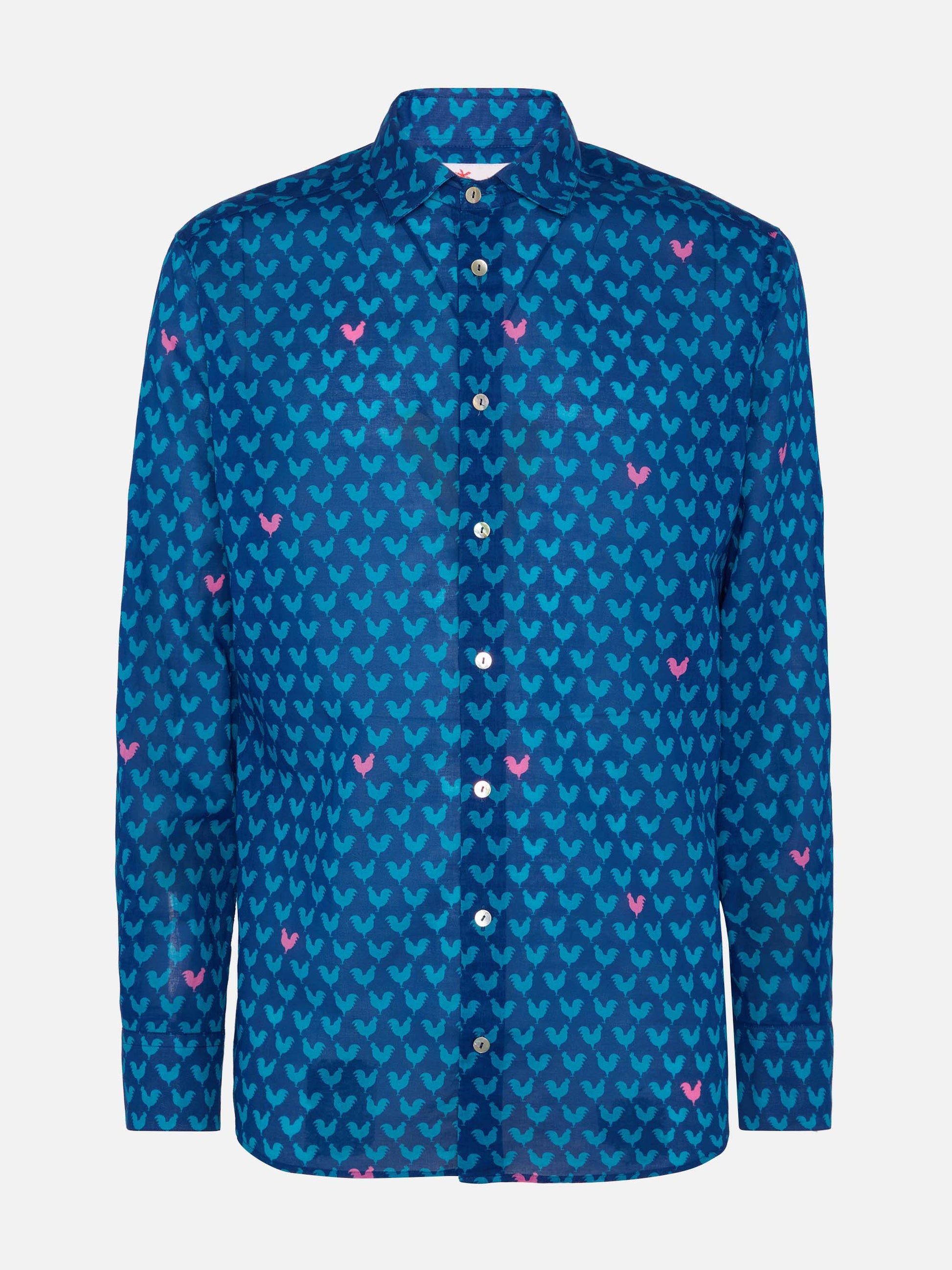Sikelia-Hemd aus Musselin-Baumwolle für Herren mit Hahnenprint
