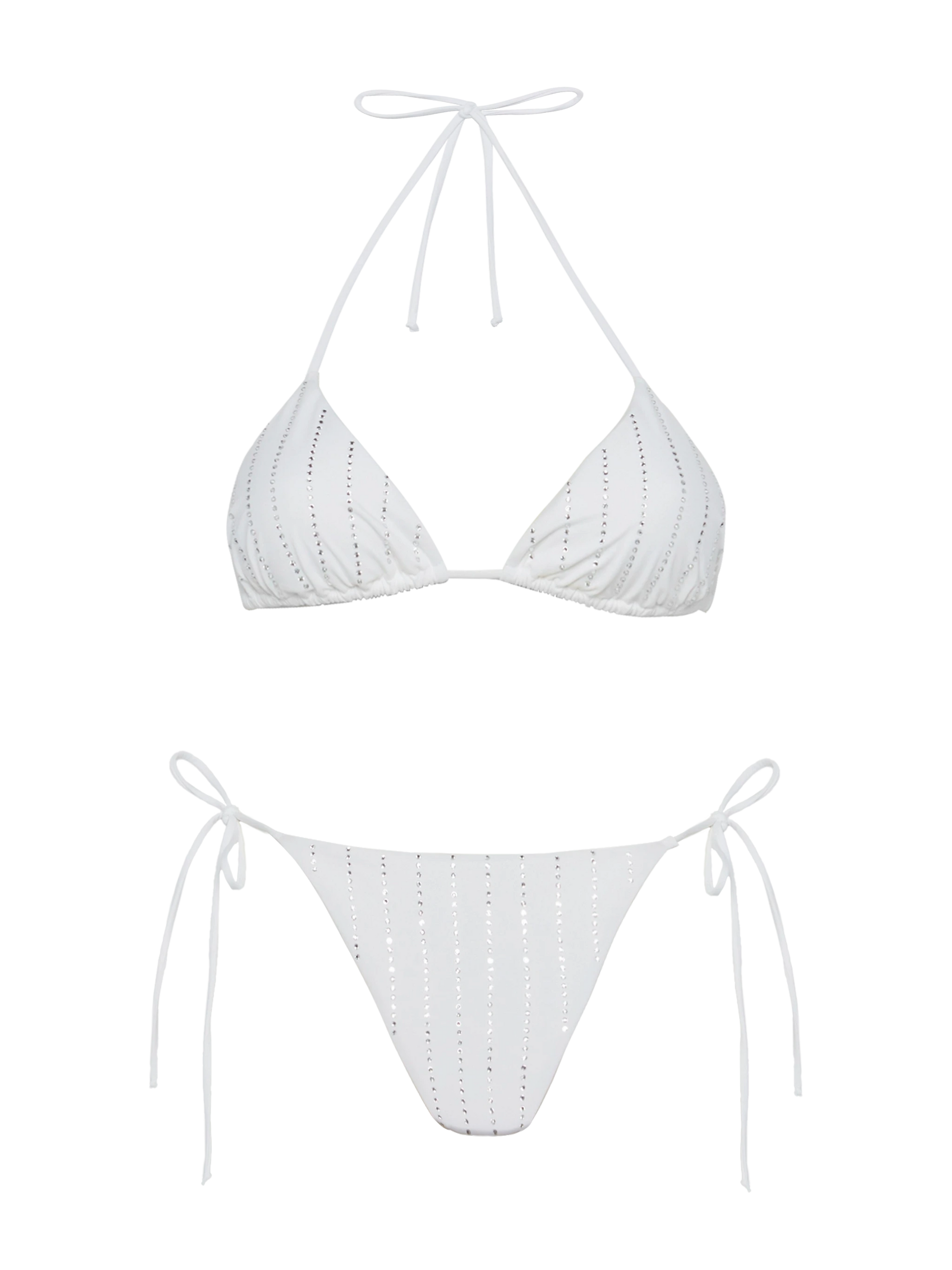 White classic triangle bikini Leah Marielle with striped rhinestone embellishment - MC2 Saint Barth