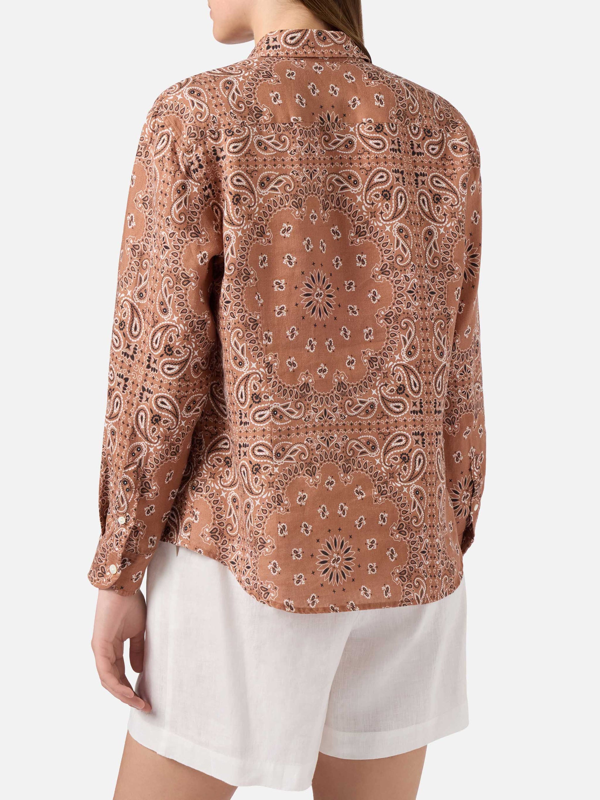 Meredith classic shirt with brown bandana print