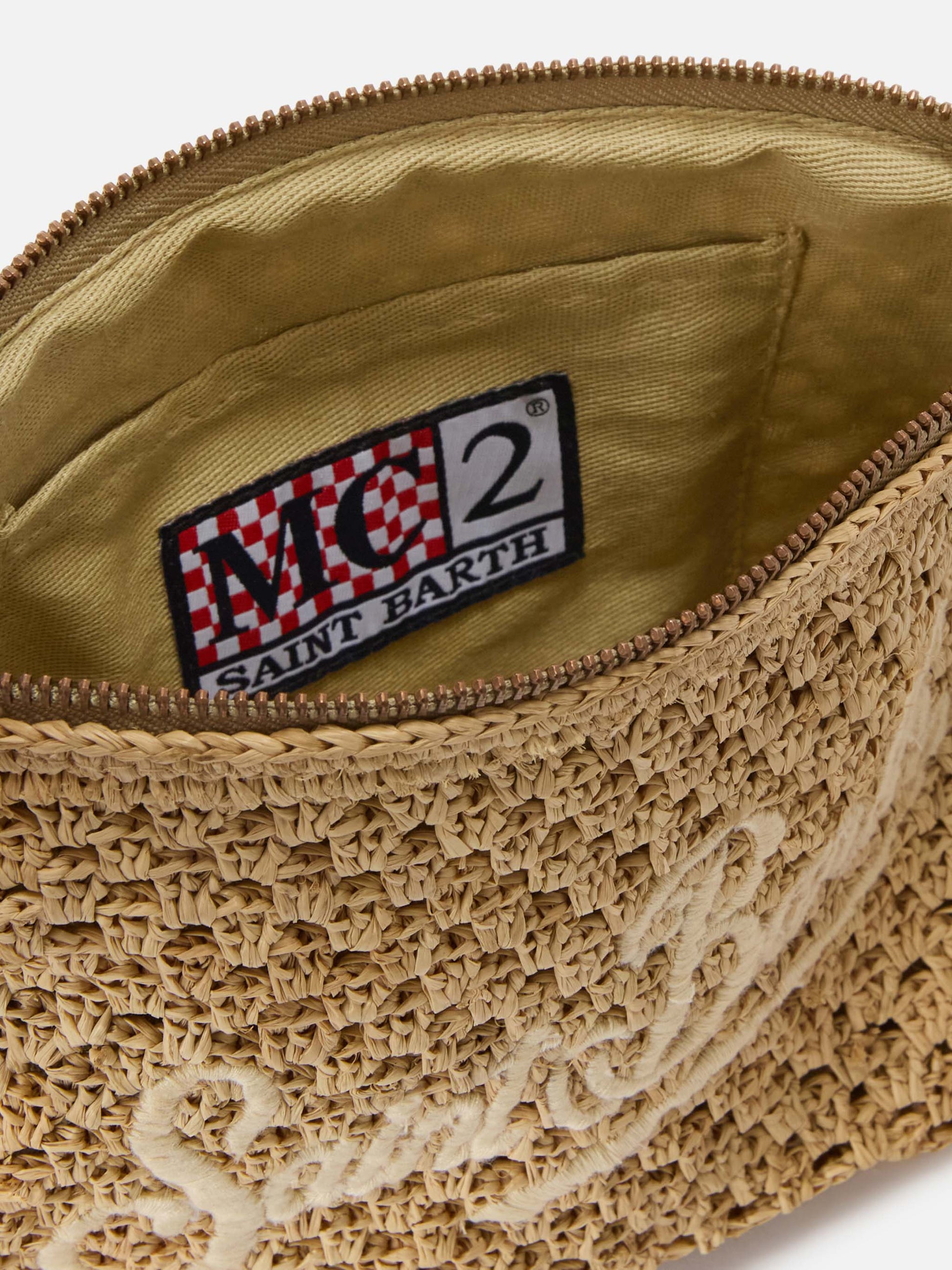 Natural Raffia pouch with embroidered logo