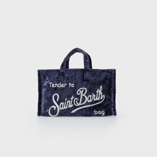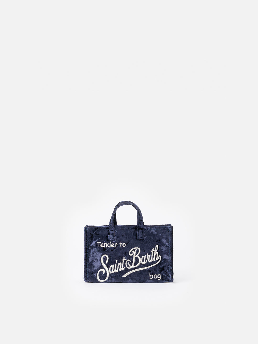 Marineblaue Telefontasche aus Chenille mit Saint Barth-Logostickerei
