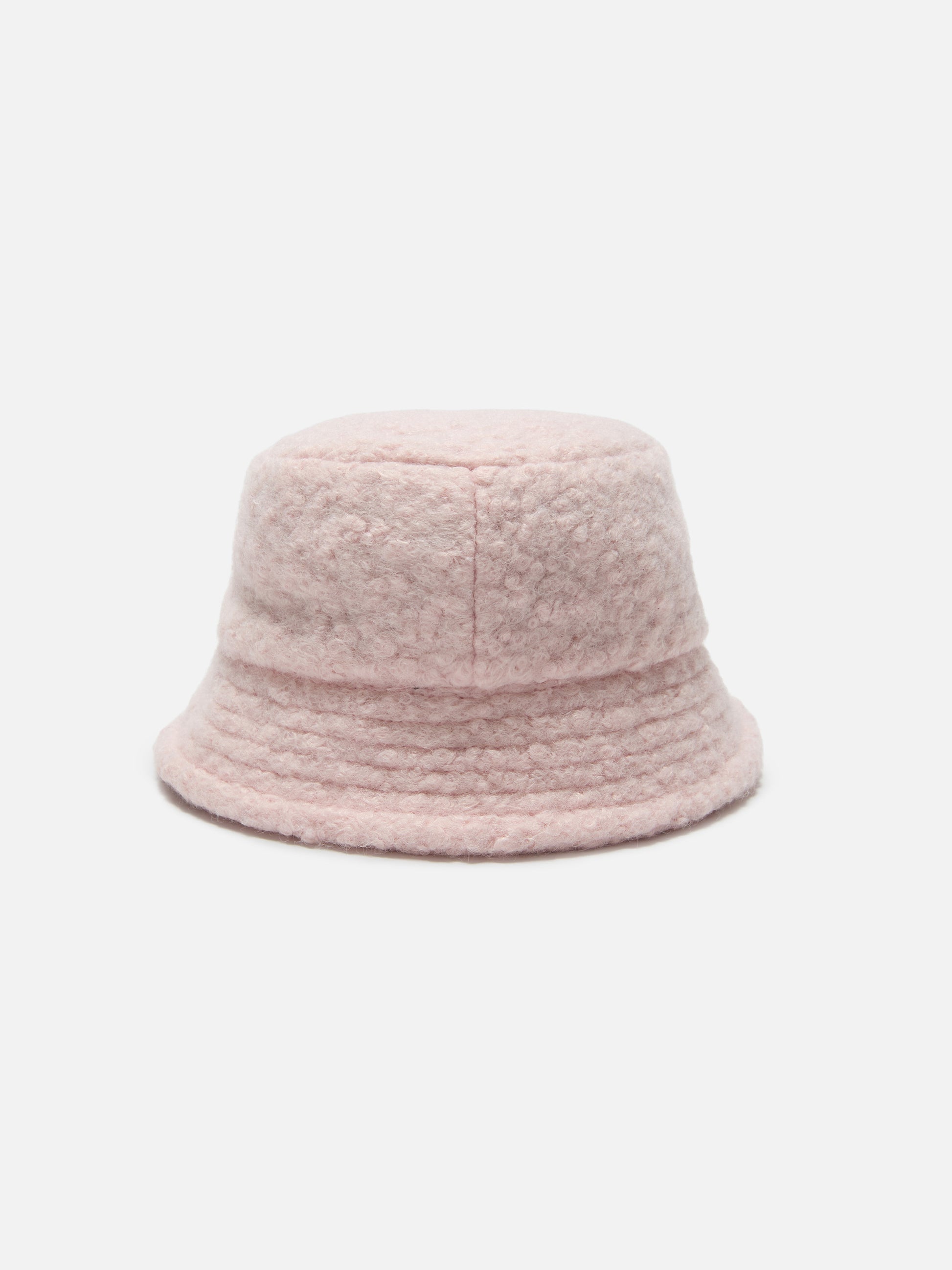 Pinkfarbener Sherpa-Fischerhut mit Stickerei vorne
