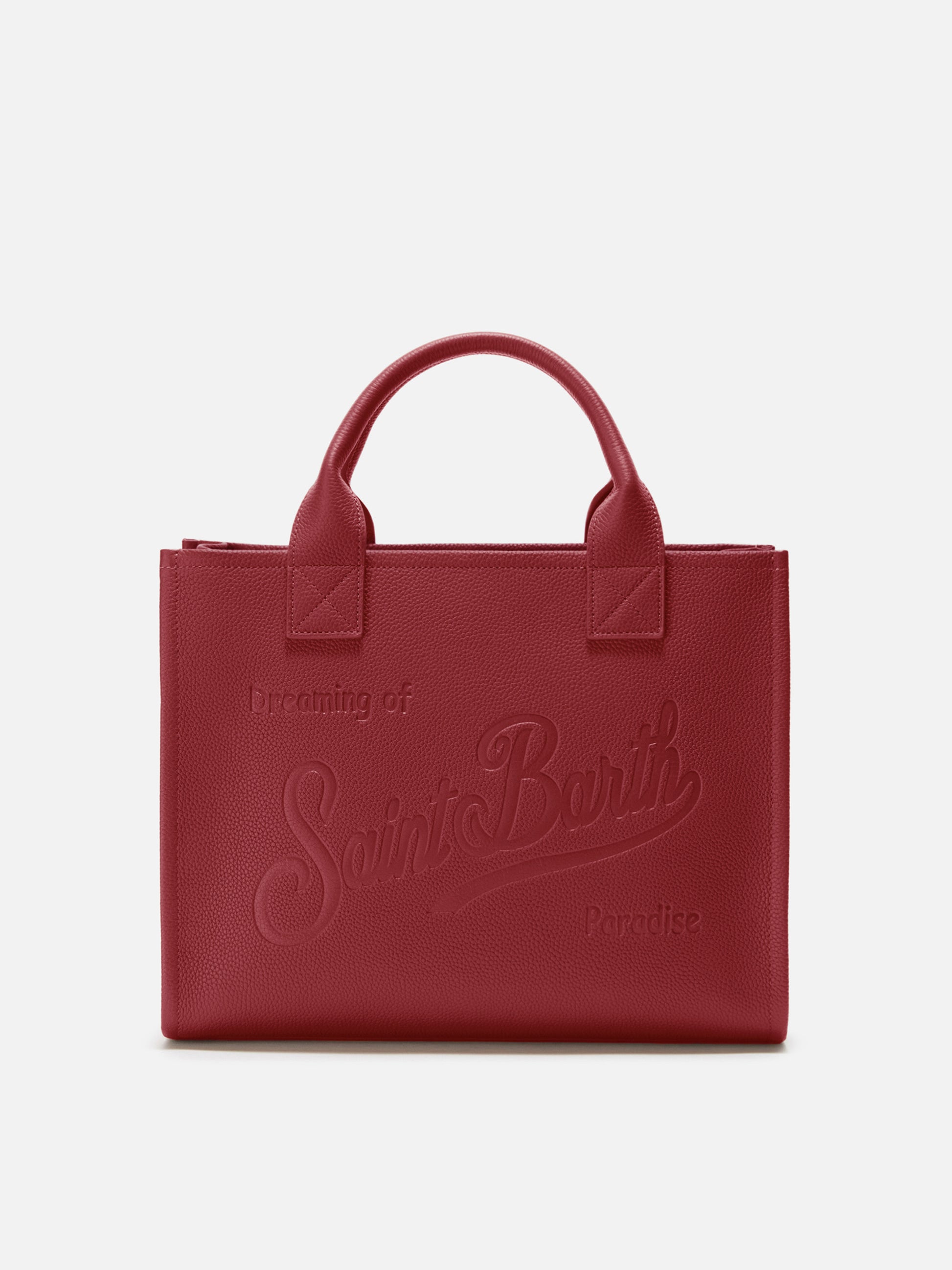 The Vanity Bag Large in burgundy combines capacity and refinement, ideal for any occasion.