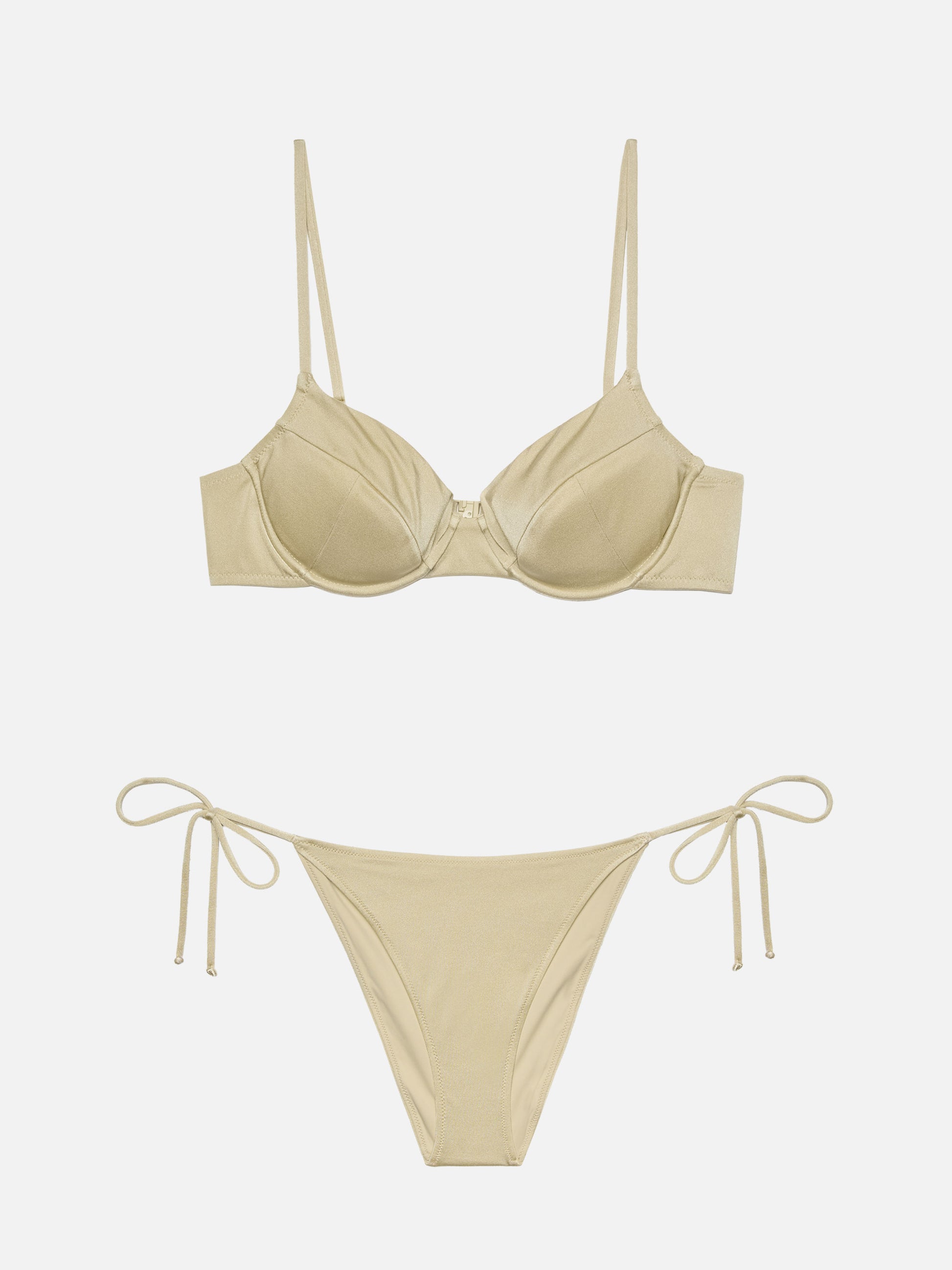 Klassische goldene Badehose „Virgo“ – Bügel-Bralette „Bea“ in schimmerndem Gold