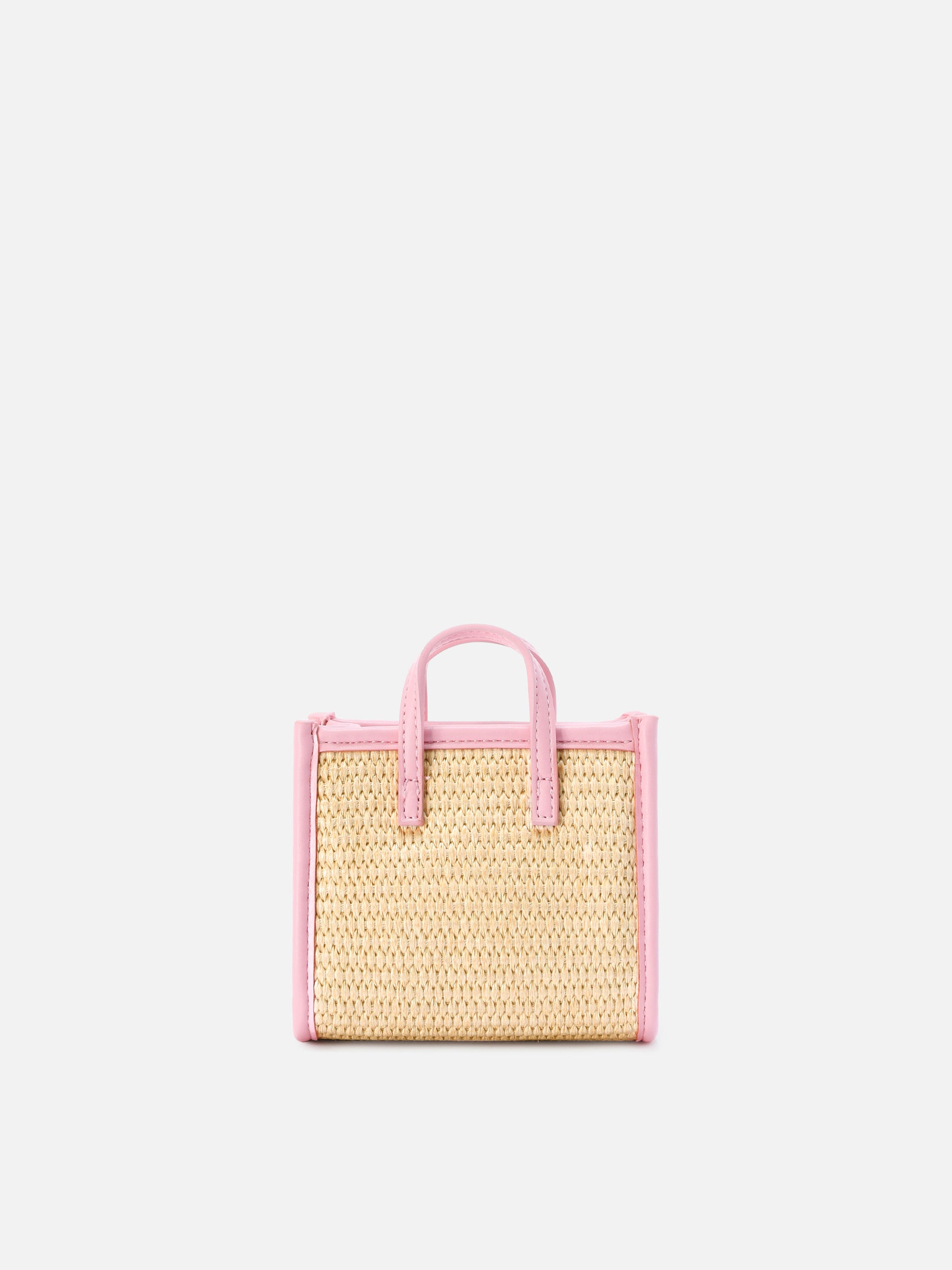 Vivian micro raffia effect bag with pink embroidered logo
