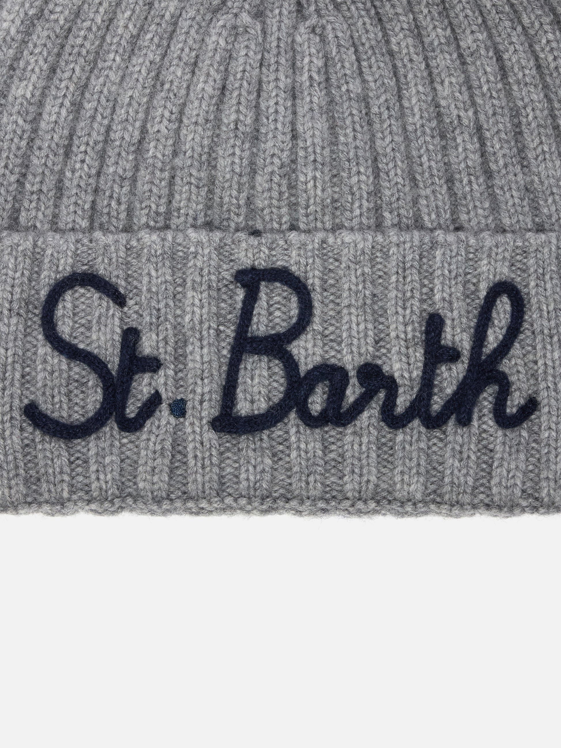Wengen-Mütze aus Kaschmirmischung in Grau mit St. Barth-Stickerei