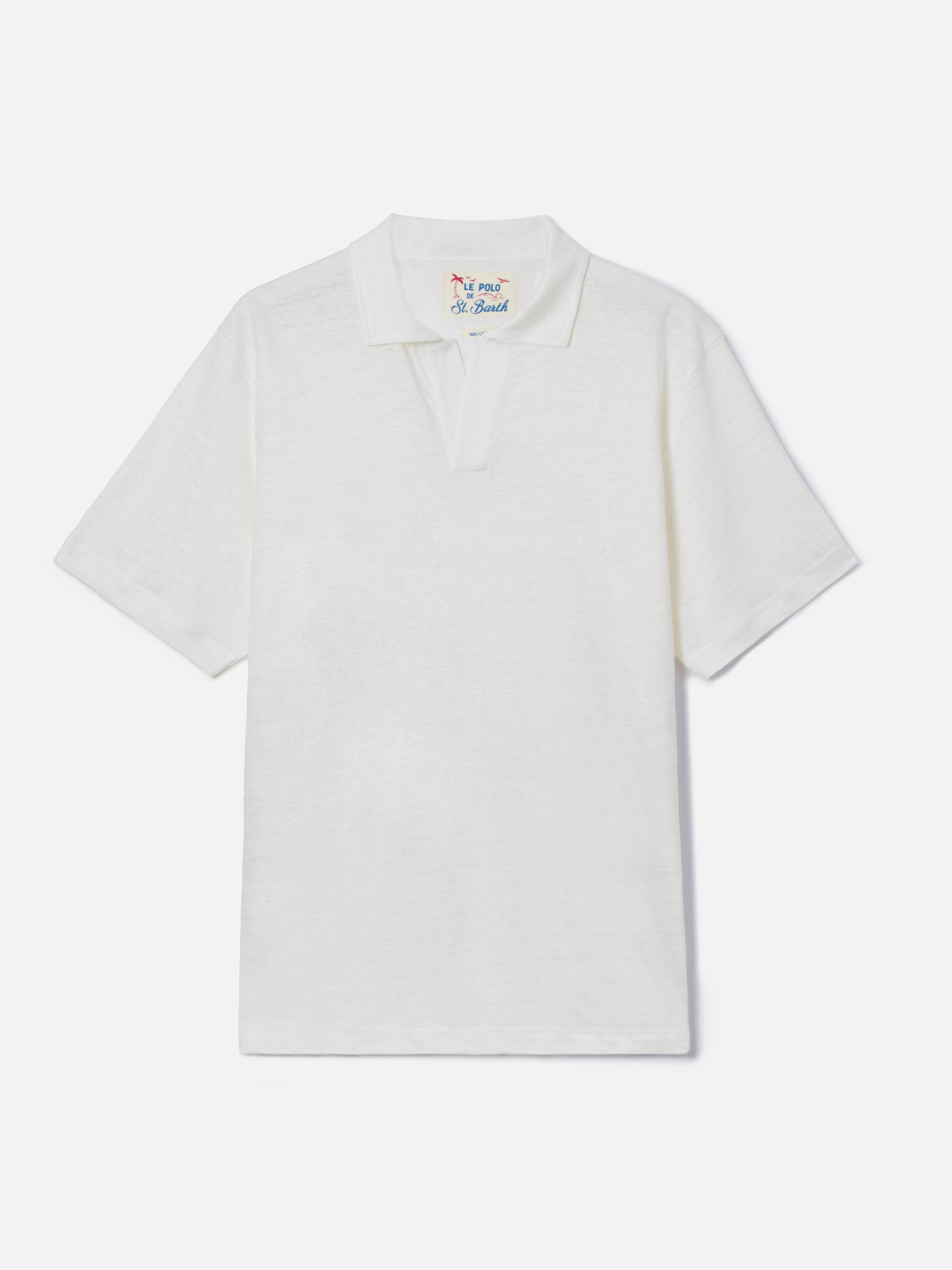 White Fraser polo in pure linen solid color