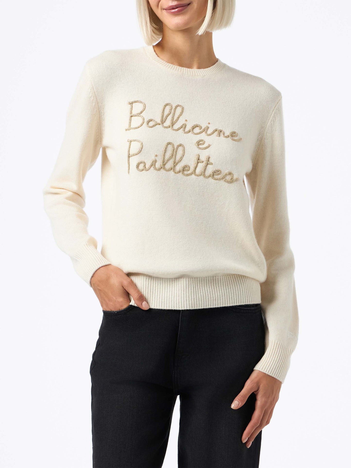 Beiger Damenpullover New Queen mit Paillettenstickerei von Bollicine