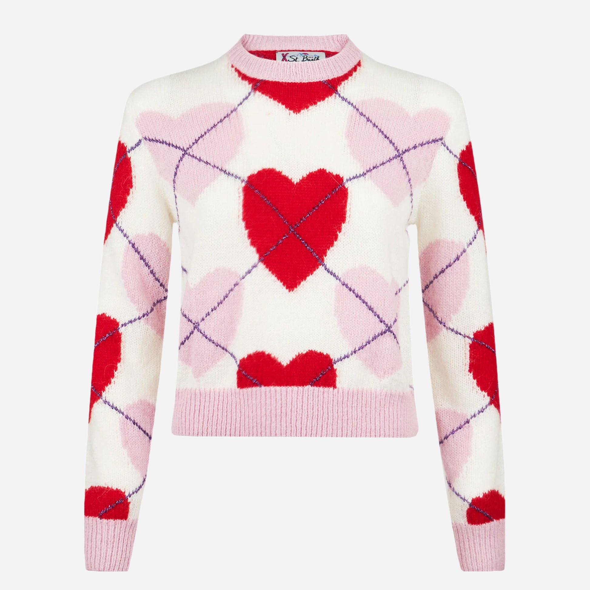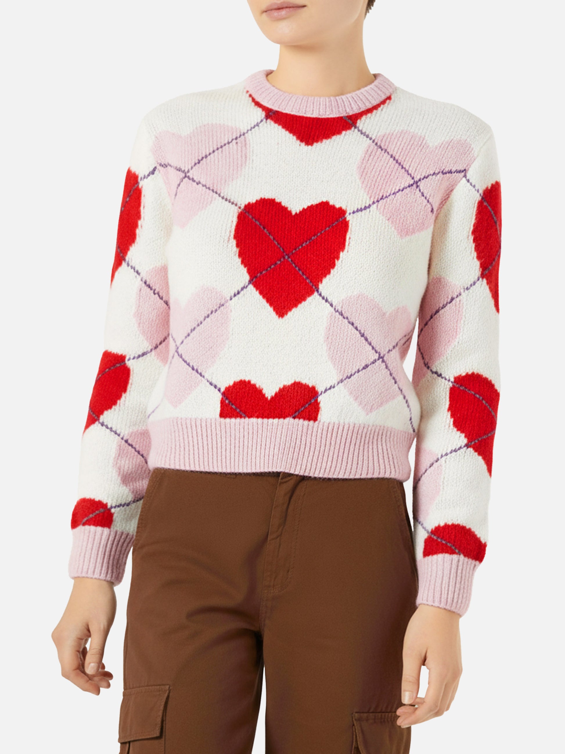 Gebürsteter, kurz geschnittener Damenpullover mit Herzmuster